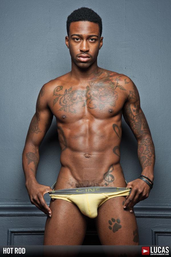 Roderick Orlando, aka Hot Rod is probably one of the better known modern black gay porn stars… although I do believe he told Jacob Kohinoor he wanted to get with a white girl just once. The Maryland native quit porn a few years ago and has decided to do more of his art work. Usually when a porn star announces a new career such as real estate or say art, it’s just to have something to do. In Hot Rod’s case, he isn’t just good at what he does, he is an exceptional artist. He’s had multiple art exhibits and fashion shows, including one at New York City’s Ritz Bar and Lounge on West 46th Street. He’s even presented Amber Rose with a painting he did of her. When he isn’t painting he stars in the the webseries Street Behavior and does various club appearances.