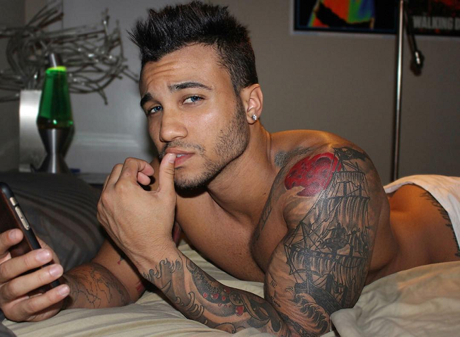 Dalton Jackson’s a model and Youtuber we’ve covered as an Eye Candy model in the past. The Tampa native, now living in L.A.’s made a name for himself as a social media star with his charm and chiseled body. At least that’s what many of us thought until we learned of him having a porn past. It turns out he’s done videos for CollegeDudes.com back in 2011 of him j*rking off, which could be excused as something straight guys do… that is if you disregard the fact the video appeared on a gay site. Then there’s the tat he has on the top of both butt cheeks.